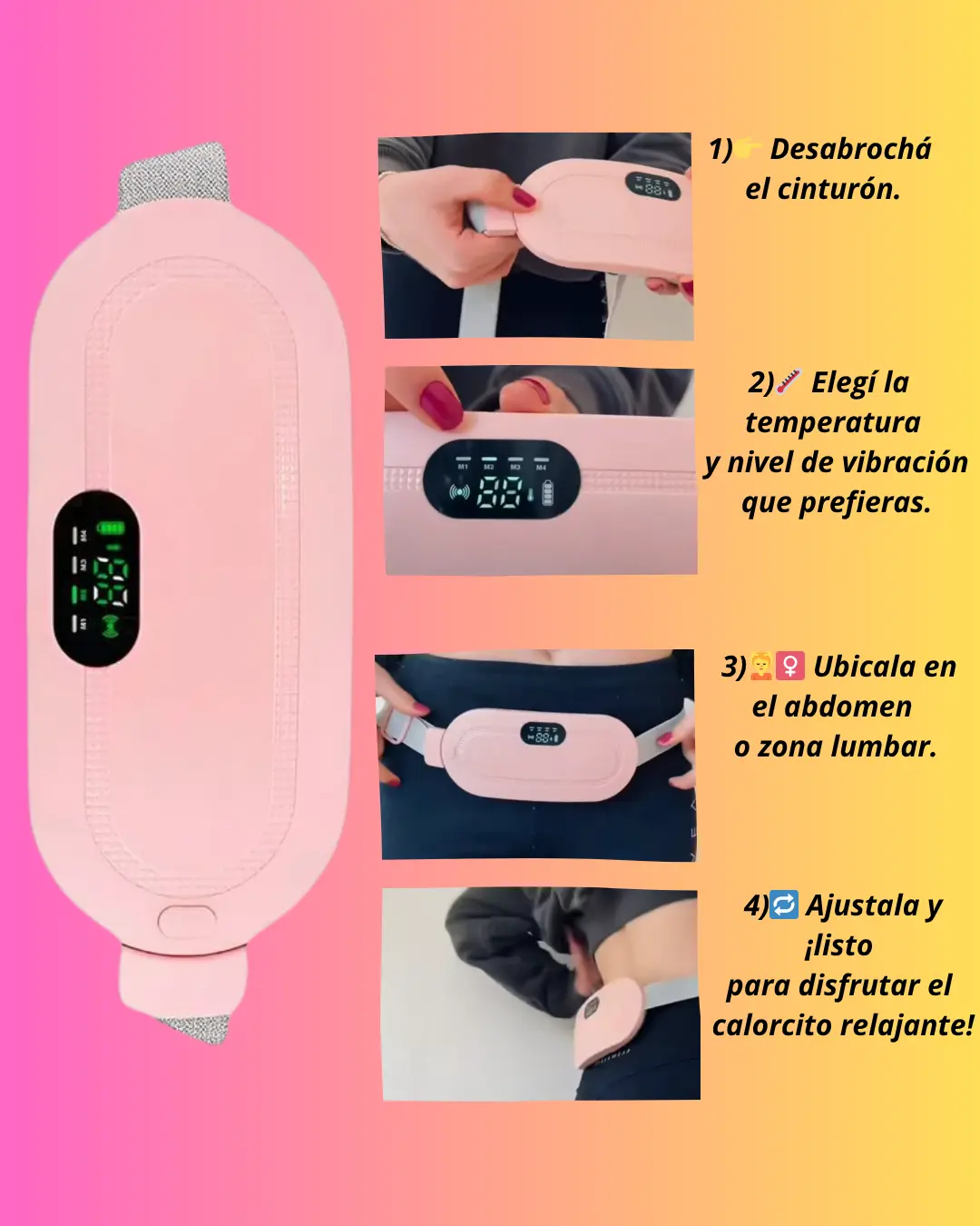 Usarla es tan simple como querer sentirte bien. Ajustá la almohadilla en el abdomen o zona lumbar, elegí la temperatura y el nivel de vibración que te resulten más cómodos, y en segundos vas a empezar a sentir ese calor suave que relaja, alivia y te devuelve el bienestar. Diseñada para adaptarse a vos, sin complicaciones y con resultados inmediatos.